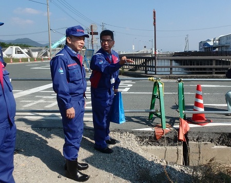 【平成28年11月4日】 大野政務官が細島港(宮崎県日向市)津波防災訓練に出席し、平成28年熊本地震の被災地を視察