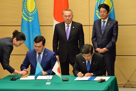 11月7日、カザフスタン共和国ナザルバエフ大統領の公式訪問に際して開催された署名式に石井大臣が出席し、航空に関し、カスィムベク・カザフスタン投資発展大臣との間で、直行便開設に向けた枠組みの設定に係る議事覚書に署名しました。