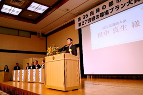 平成28年11月11日(金)に「平成28年度緑の都市賞表彰式・緑の環境プラン大賞表彰式(主催:公益財団法人都市緑化機構、第一生命保険株式会社、一般財団法人第一生命財団)」が行われ、田中良生副大臣が出席しました。