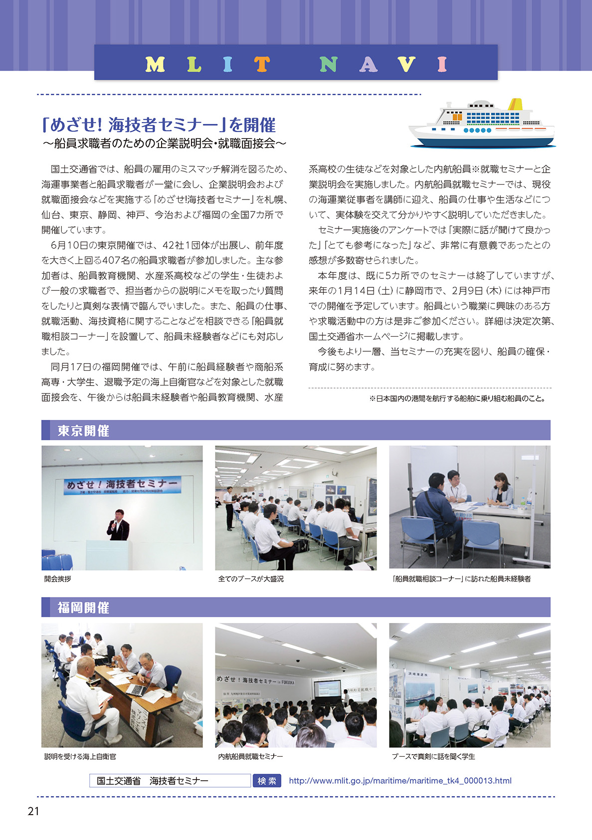 「国土交通」NO.141(2016.12-2017.1)MLIT NAVI 「めざせ!海技者セミナー」を開催
