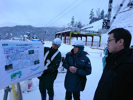 サンルダムの建設状況に関し説明を受ける田中副大臣