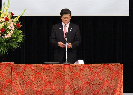 今回は、近鉄グループホールディングス株式会社、薩摩川内市、株式会社ブリヂストン 技術センター/東京AP製造所、高知県が受賞し、石井大臣からそれぞれの団体に表彰状が授与されました。
