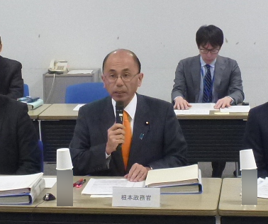 挨拶をする根本政務官