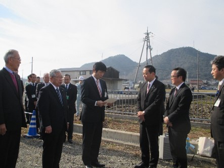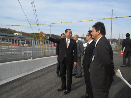 <事業中の西脇北バイパスを視察する藤井政務官>