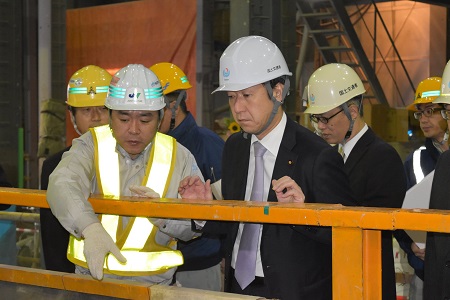 長崎市に集積する造船所の様子を視察する田中副大臣
