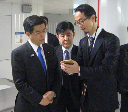昨年11月30日から一般公開しているスマートフォンのナビゲーションアプリ「ジャパンスマートナビ」を使用し、自分の位置が表示される機能、ルート案内機能(最短ルート及び階段等を回避するバリアフリールート)などを体験しました。