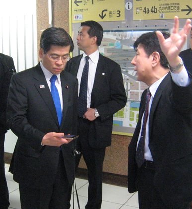 石井大臣は、1月11日、東京駅周辺において、GPSで位置情報が取得困難な屋内・地下における歩行者用ナビゲーションサービスの実証実験を視察しました。