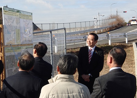 <事業中の神戸西バイパスを視察する藤井政務官>