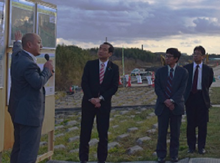 <事業中の滝野地区を視察する藤井政務官>