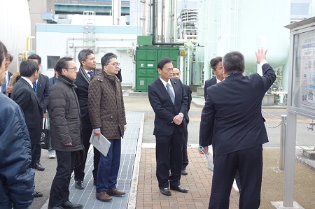 △神戸市下水道施設(東灘処理場)を視察する末松副大臣