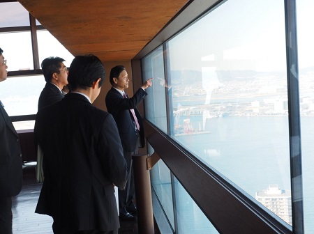 さきしまコスモタワーから大阪港を眺望される末松副大臣
