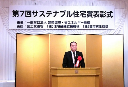 藤井政務官は挨拶の中で、「本日受賞された住宅は、いずれも省エネルギー性能に大変優れたプロジェクトであり、我が国のサステナブル住宅を先導するモデルとなるものです。受賞者の皆様におかれましては、今後とも、さらなるサステナブル住宅の普及・推進にご尽力頂けますよう、お願い申し上げます。」と述べました。