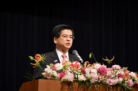 式典で挨拶する石井大臣