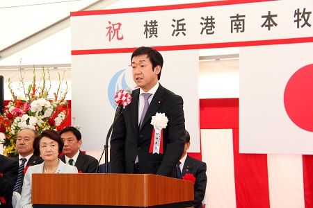田中良生副大臣は、平成29年3月4日に「横浜港南本牧はま道路」開通式に出席しました。田中副大臣は挨拶で「南本牧はま道路は、南本牧ふ頭と高速道路を直結する道路。横浜北線や圏央道の開通と相まって横浜港のアクセスは大きく改善されます。この臨港道路を活用して更なる物流効率化が進むことを期待しています。」と述べました。