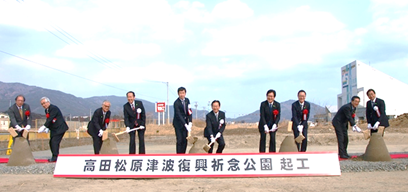 田中良生国土交通副大臣は3月5日、岩手県陸前高田市で行われた「高田松原津波復興祈念公園起工式」に出席しました。