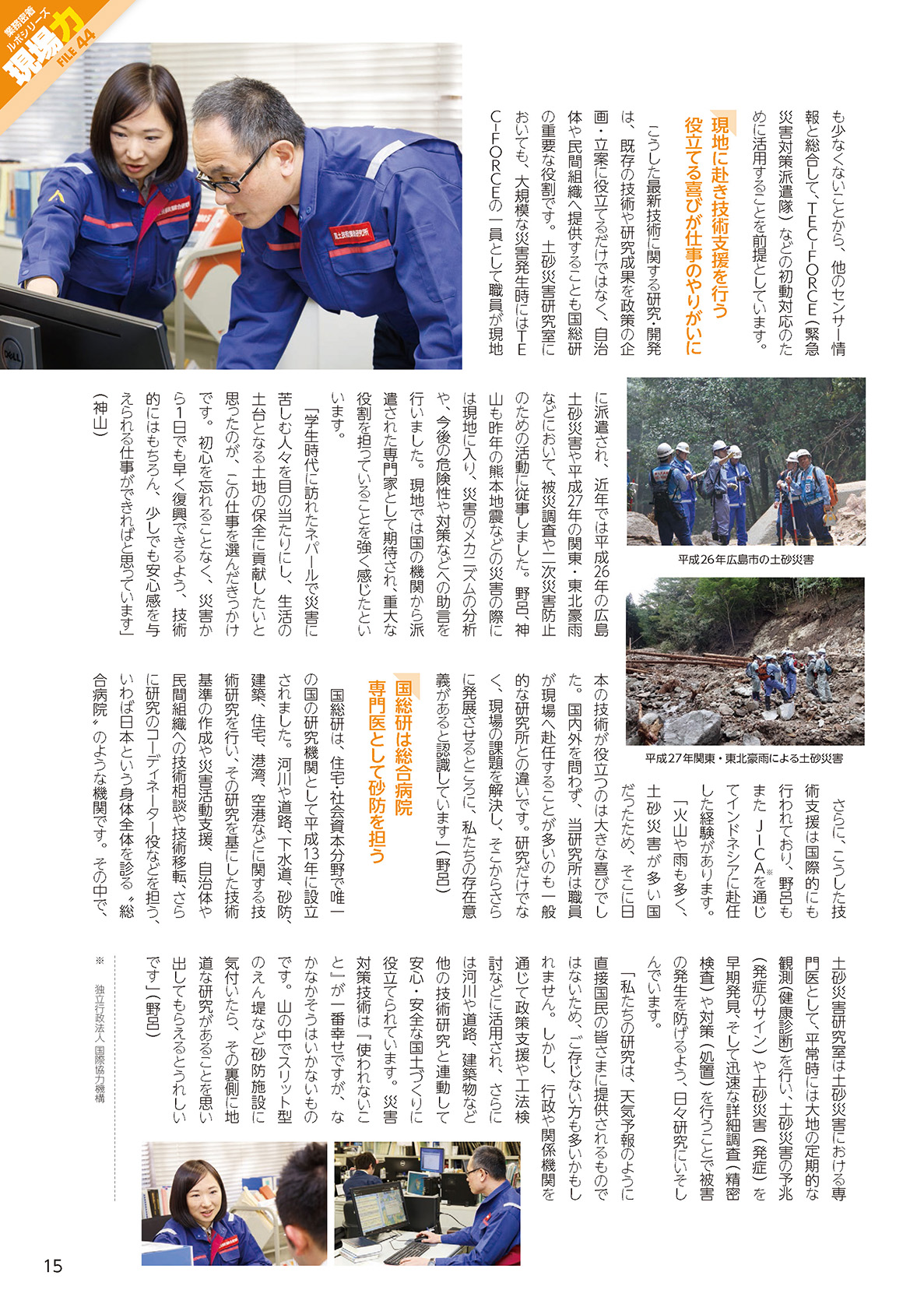 「国土交通」NO.143(2017.4-5)業務密着ルポシリーズ 現場力 国土技術政策総合研究所 土砂災害研究部 土砂災害研究室