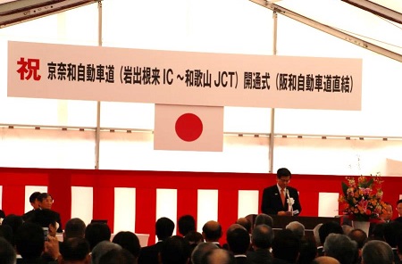 石井大臣は挨拶で「紀北地域と京阪神地域の移動時間が短縮し、地域経済の生産性が向上するほか、災害時は緊急輸送道路として機能することが期待できる。ストック効果をさらに大きく発現させるため、全線の早期完成を目指し、引き続き事業を推進してまいりたい。」と述べました。