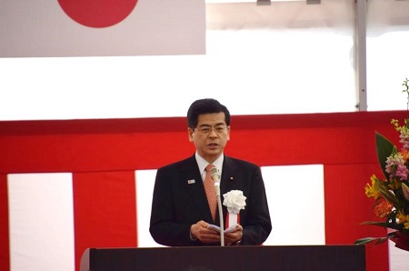式典にて挨拶する石井大臣