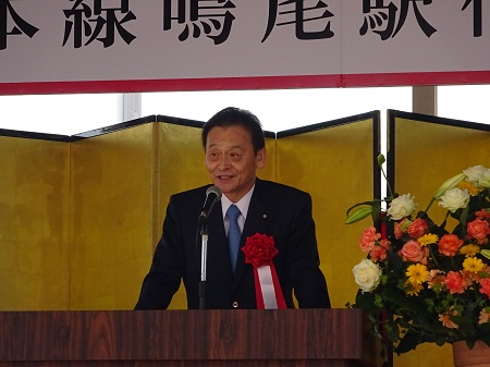 末松副大臣は祝辞の中で、「連立事業はまちと鉄道の発展に寄与するものであり、今後、地域が一体となって盛り上げ、高架下利用にも取り組み、西宮市や阪神電鉄が発展するよう願っております。」と述べました。