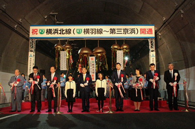 田中副大臣は、挨拶の中で「今回の開通によって、首都高速の湾岸線、横羽線、そして第三京浜がネットワークで結ばれ、羽田空港や横浜港へのアクセスが改善されます。それが、国際競争力の強化に繋がるとともに、横浜市内各地への輸送ルートが多重化されることで、防災力の強化が期待されます。さらに、首都圏全体では、圏央道などの首都圏3環状と一体的な道路ネットワークとして機能することで、人やモノの流れが大きく変わることが期待されます。」と述べました。
