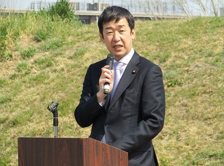 ▲挨拶する田中副大臣