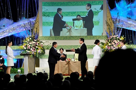国土交通大臣賞として、大和ハウス工業株式会社の「サステナブルな街づくりへ 日本初のネット・ゼロ・エネルギー・タウン(ZET)を実現」が受賞され、代表の大野社長に対し、藤井政務官より表彰式とトロフィーが授与されました。