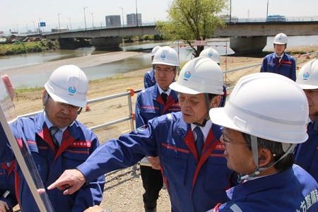 また、追悼式出席後、熊本地震により被災した白川の復旧状況について視察しました。