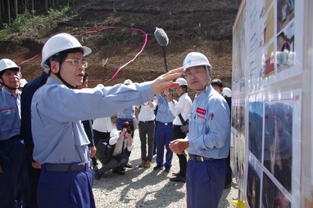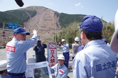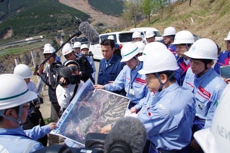 阿蘇大橋地区の斜面対策を視察する石井大臣