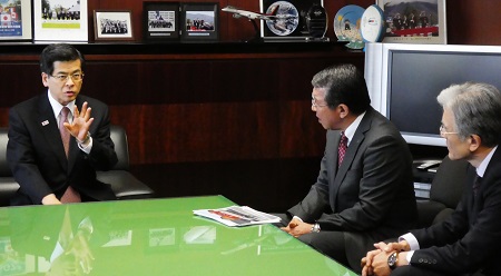 【平成29年4月19日】 津波救命艇を設置したセブン-イレブン・ジャパン社の古屋社長による石井大臣への表敬訪問