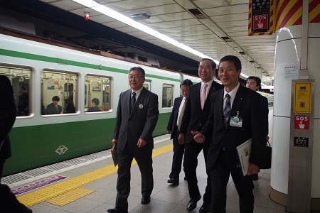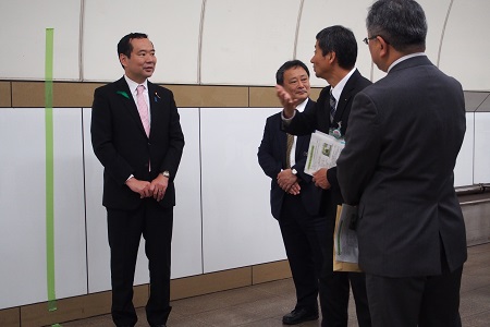 また、就役披露式後、神戸市営地下鉄三宮駅において、ホームドア、エレベーターの整備計画の概要説明を受け、整備予定箇所の視察を行いました。