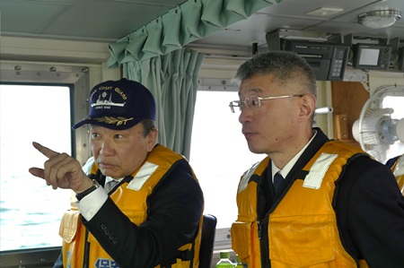 巡視艇「ひだかぜ」に乗船しての洋上視察