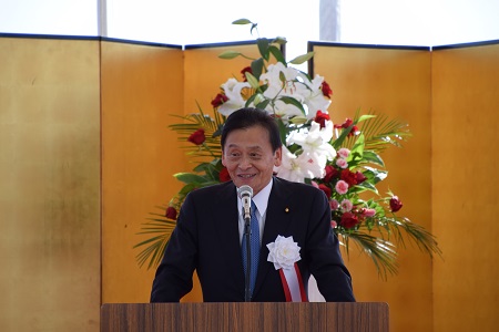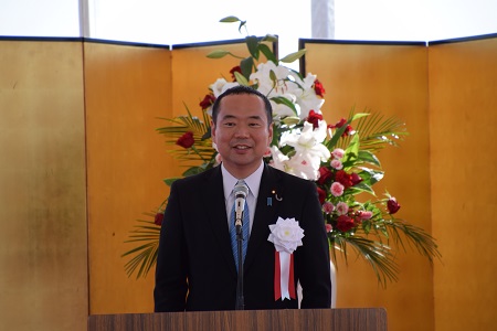 式典で挨拶をする末松副大臣