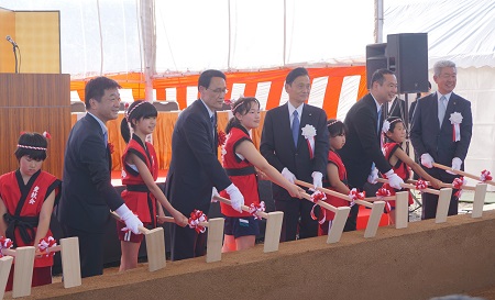 鍬入れ式に参加する末松副大臣と藤井政務官