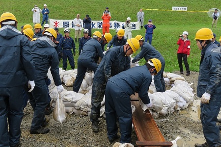 決壊しそうな堤防を守るための水防工法、避難に結びつく情報伝達訓練、住民避難訓練など、関係機関と連携した実践的な訓練を実施しました。