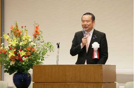 挨拶をする藤井政務官