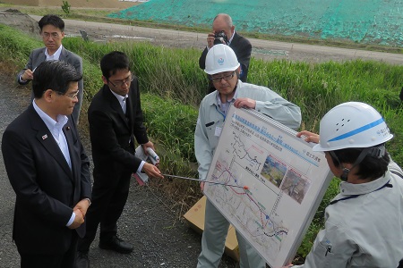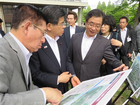 日本海沿岸東北自動車道の説明を受ける石井大臣
