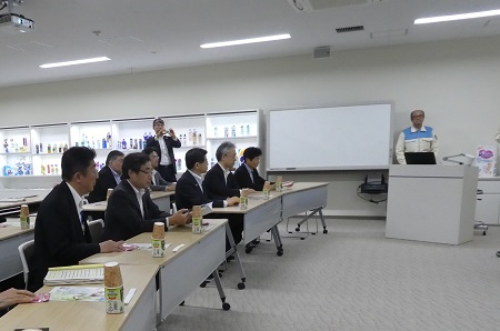 花王(株)酒田工場で説明を受ける石井大臣