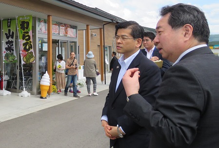 道の駅しょうないの説明を受ける石井大臣