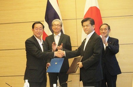 また、平成29年6月7日(水)、首相官邸において、菅官房長官及びタイ王国ソムキット副首相の立ち会いの下、鉄道分野に関する協力覚書を締結しました。本覚書は、国土交通省とタイ運輸省の間で、バンコク~チェンマイ高速鉄道、新たな貨物鉄道サービス、バンコク首都圏鉄道マスタープランの改定支援、バンスー駅周辺の都市開発等の鉄道分野に係る案件全般の協力を表明するものです。