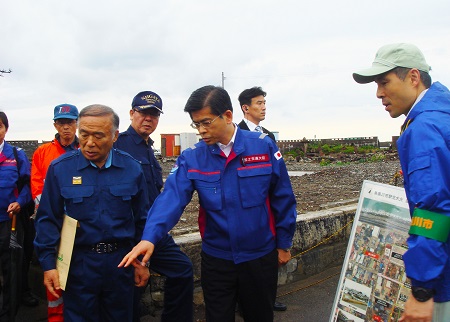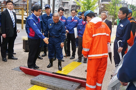 糸魚川市から説明を受ける石井大臣