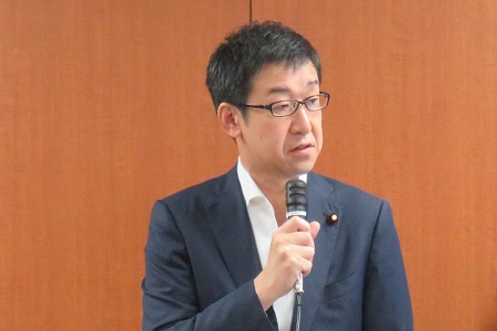 田中副大臣は冒頭の挨拶で、「昨今の港湾を取り巻く情勢は、コンテナ船の大型化やアライアンスの再編など目まぐるしく変化しており、こうした状況に対応するためには、「集貨」「創貨」「競争力強化」の3本柱の取組に加え、新たな視点により国際コンテナ戦略港湾政策をこれまで以上に強力に推進していく必要がある。」と述べました。