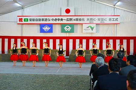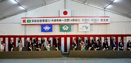 大野政務官は、挨拶の中で「常磐道のいわき中央から広野の4車線化は、経済、暮らし、そしてなにより命を守るしっかりとした道として使い頂けるよう、この復興再生期間の中で完成させる」「また大熊、双葉両ICにあっては30年度、31年度と完成をさせる」「これらによって復興が進み、そして本当の意味での東北の元気、日本の元気を取り戻せるように努力していきたい」と述べました。