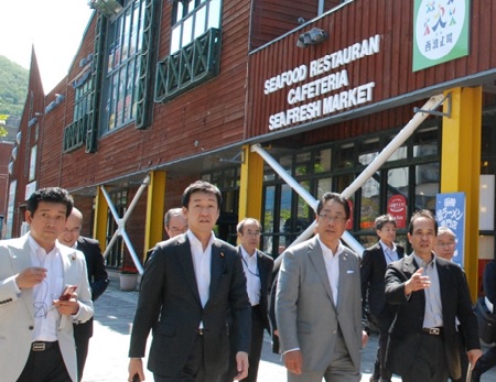 田中良生副大臣は、6月17日(土)から19日(月)にかけて、北海道函館方面及び青森県内を視察し、各市町長等と意見交換しました。北海道函館方面では、函館港に寄港が増加しているクルーズ船の受入環境の整備状況、函館港弁天地区のほか、観光立国の実現のため、目に見える形での景観形成を促進する「景観まちづくり刷新モデル地区」である函館市西部地区等を視察しました。青森市においては、東北初となるクルーズ船対応の耐震強化岸壁が整備された青森港、青森県総合運動公園を視察しました。弘前市においては、弘前公園や「景観まちづくり刷新モデル地区」である禅林街、十和田市においては、一般国道103号奥入瀬(青橅山)バイパスの整備状況等を視察しました。