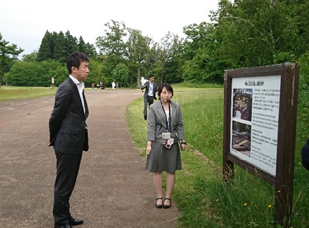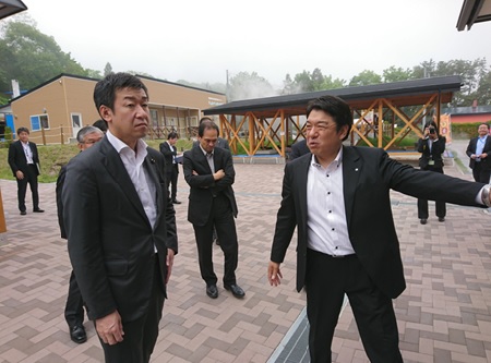 道の駅「しかべ間歇泉公園」を視察する田中副大臣