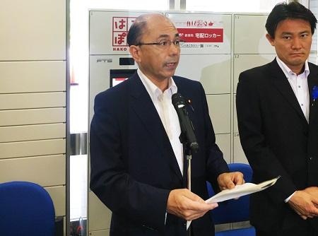 【平成29年7月3日】 宅配ボックス・再配達削減説明パネル設置セレモニーに根本政務官が出席