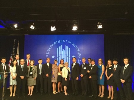 平成29年6月30日、藤井政務官は、米国ワシントンD.C.において開催された国土交通省、独立行政法人都市再生機構と米国住宅都市開発省、米国政府抵当金庫のエイジング・イン・プレイスの共同研究に関する協力覚書の署名式及び報告会に、石井大臣の代理として出席しました。