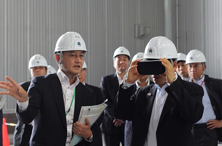 横浜市の大成建設技術センターでは、Zero Energy Buildingの状況やICTを活用した各種のロボット技術、津波造波装置等を視察し、ICTの視察では、コンクリート床仕上げロボットの操作や臨場型遠隔映像システムで使用されるヘッドマウントディスプレイの装着などを体験しました。