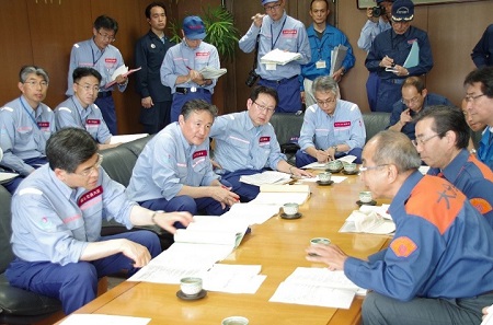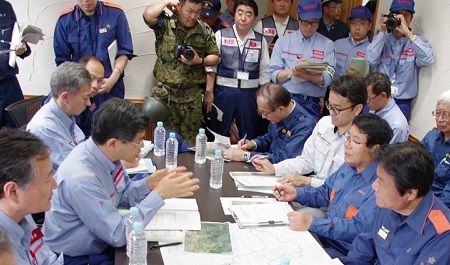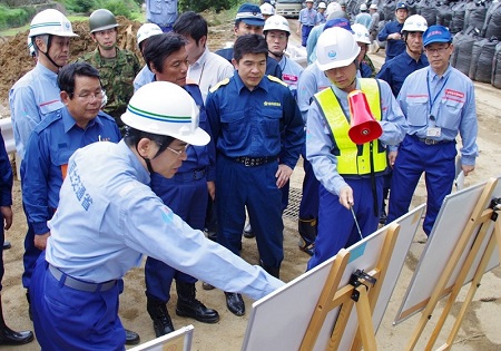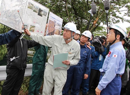 テックフォースを現地で激励する石井大臣