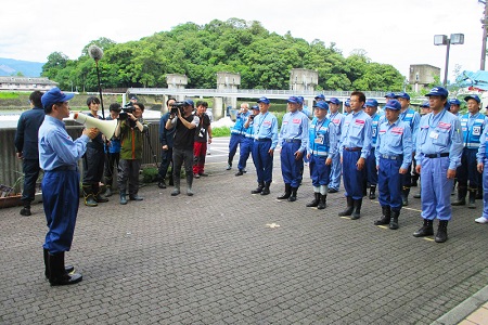全国各地の地方整備局から派遣され、被災状況調査や道路啓開で地域支援を行っているテックフォースを現地で激励しました。