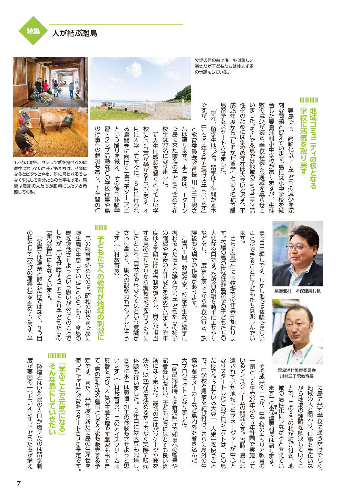 「国土交通」NO.145(2017.8-9)離島留学の子どもたちが地域の刺激になる。学びを産業化する小さな島の試み